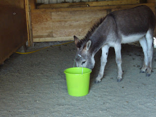 All the donkeys are doing really well. We have had to start feeding hay as the lack of rain has caused some of our pastures to dry up. We are irrigating pasture one right now and the donkeys should be able to get back on it in a week or so. We will have to monitor how much time they will be on it each day as the grass is very rich in this pasture. We tried putting all the donkeys out on the hill side but they would just go through the electric fence and run around. It's to bad because there is a lot of feed on the hill but they wouldn't settle down and just graze. The herd mentality took precedent.